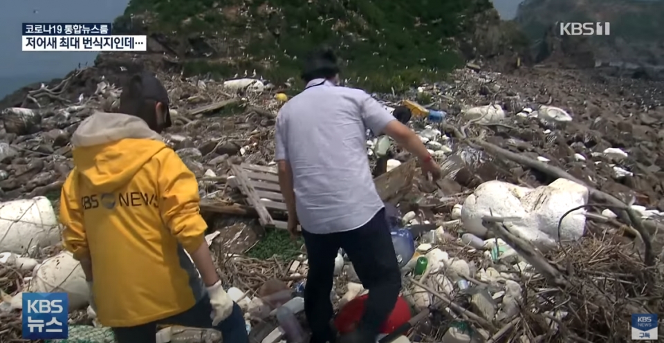 하지만 희소식만 들려온 것은 아니었다. 5일 KBS 뉴스는 저어새의 국내 최대 번식지 구지도에 쓰레기가 가득한 모습을 공개했다.