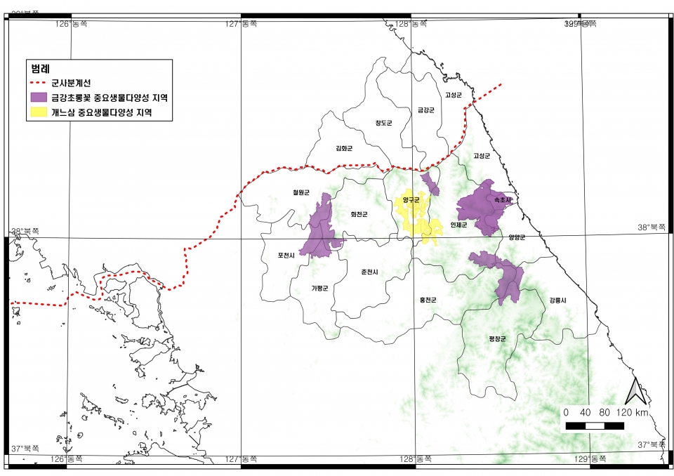 그중 동물이 아닌 식물을 대상으로 한 보호구역 지정은 국내에서 처음으로 추진하는 것으로, 강원도 양구군 일대 1339.5㎢를 대상으로 하고 있다.