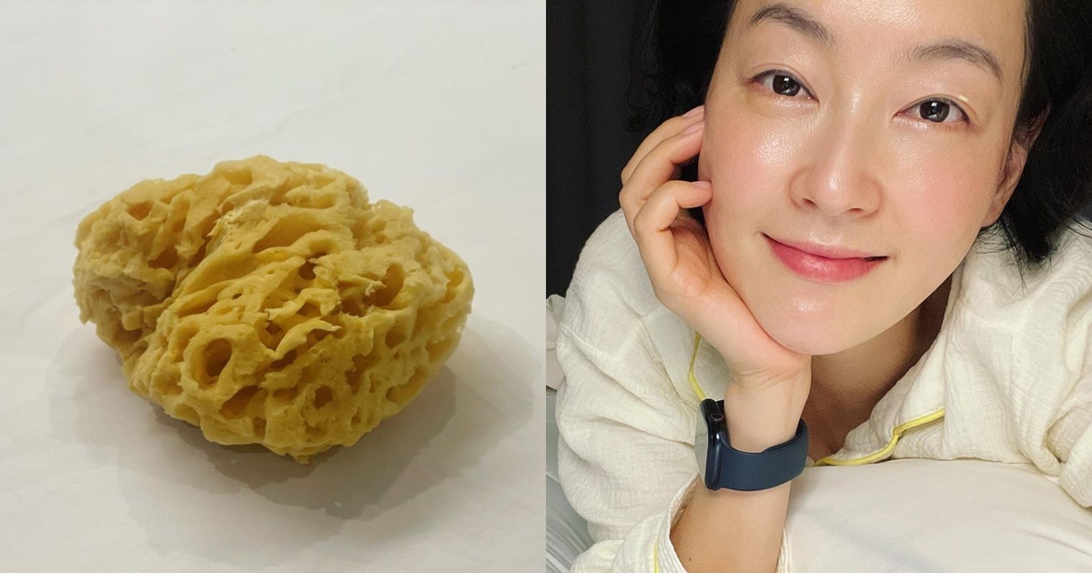 그가 올린 사진에는 천연 해면 스펀지와 이를 사용해 씻은 후 촬영한 얼굴 셀카가 담겼다.