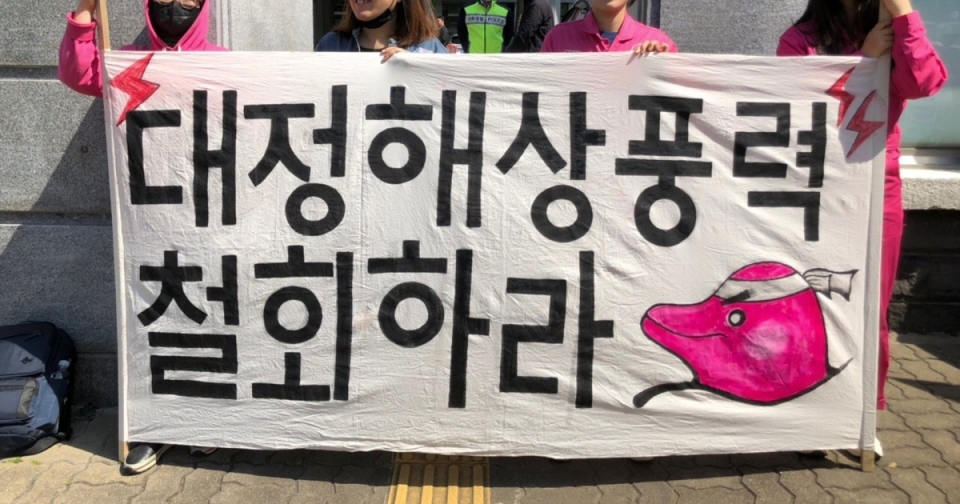 제주 해상풍력단지 건설에 반대하는 환경 단체 핫핑크돌핀스를 비롯한 어민∙주민은 이번 결정을 규탄하는 집회를 29일 오후 1시부터 제주시 연동 제주도의회 앞에서 연다. 29일 2시부터 예정된 ‘대정해상풍력단지 시범지구 동의안’의 본회의 통과를 막기 위해서다.