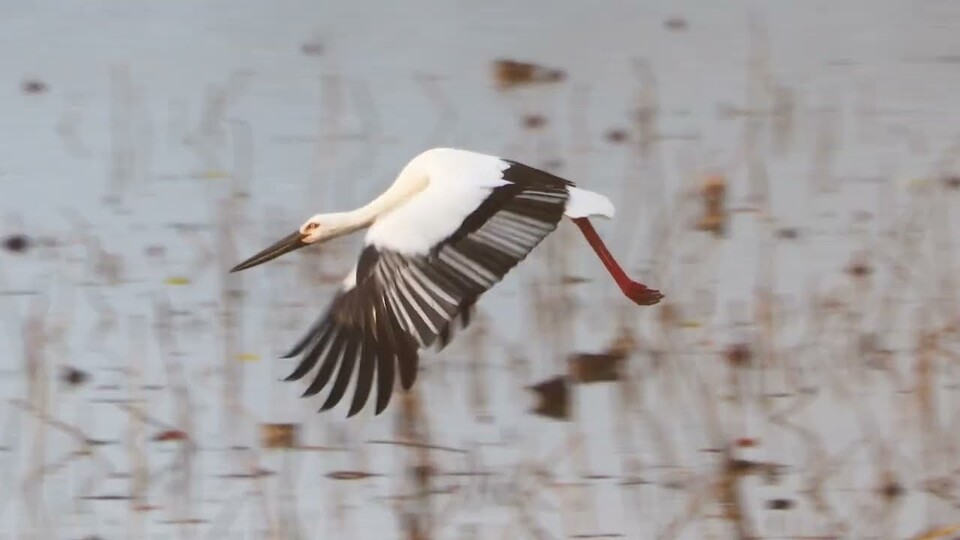 경남 창원 주남저수지에 황새 10마리가 찾아왔다. (영상 한국조류보호협회 창원지회)/뉴스펭귄
