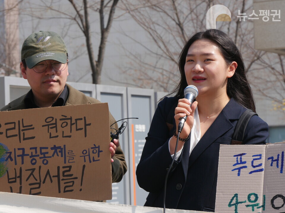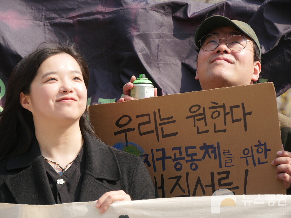 7일 수원지방법원 앞, 피고인 아버지의 눈시울이 붉어졌다. 강은빈 청년기후긴급행동 대표의 아버지 강광원 씨다. 그는 "우리의 시간은 4년이지만 수십 년 전부터 투쟁을 이어온 지구 반대편 사람들과 연결돼 있다는 느낌을 받았다"며 "재판에 나선 청년들이 앞으로도 평생 이 길을 걸어갈 것을 떠올리니 희망이 생긴다"고 말했다.