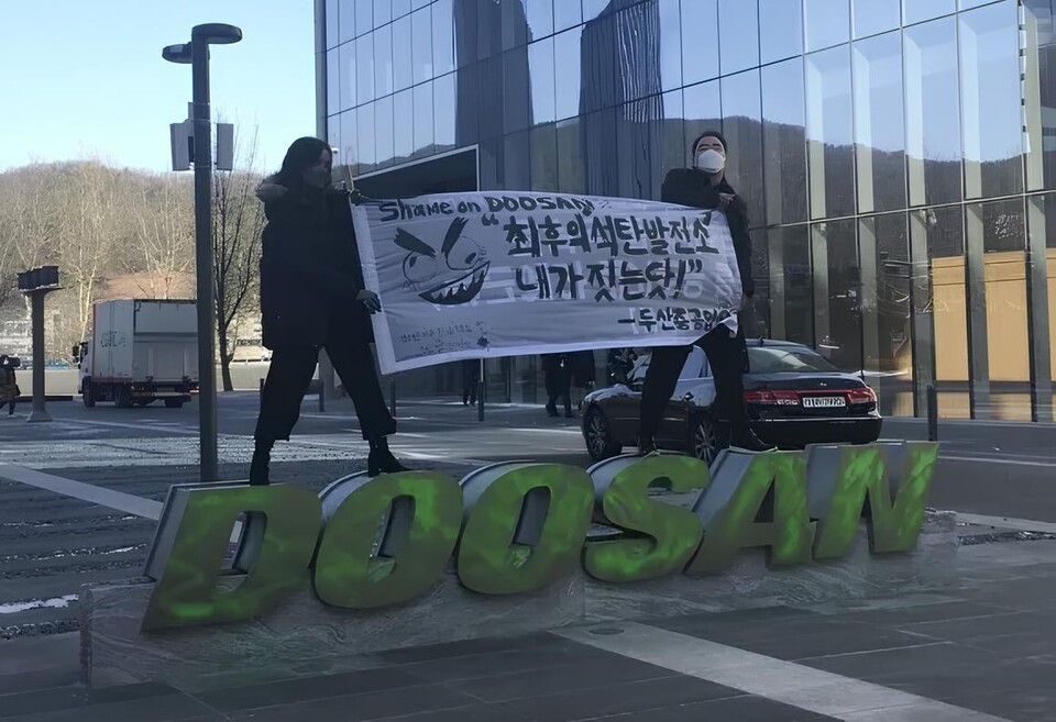 한편, 두산중공업은 형사재판과 별도로 두 활동가에게 1840만원을 배상하라는 민사소송을 청구했다가 증거 부족으로 패소했다. 이후 두산중공업이 항소를 포기하면서 사건은 종결됐다. 두산중공업이 2021년부터 참여해온 베트남 붕앙2 석탄발전소 사업은 올해 완공을 앞두고 있다.