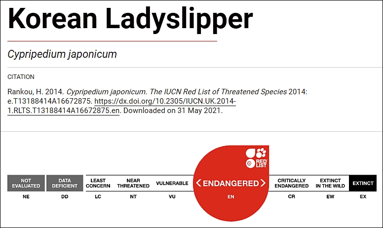 무분별한 손길에 희생된 광릉요강꽃은 결국 멸종의 벼랑 끝에 다다르게 됐다. 전 세계를 기준으로 멸종위기 등급을 평가한 세계자연보전연맹(IUCN) 적색목록에는 '위기'(EN, Endangered)종으로, 우리나라에서는 '환경부 멸종위기 야생생물 I급'으로 지정됐다. 산림청 국립수목원에 따르면 현재 국내 야생에 남아 있는 광릉요강꽃은 약 1000개체 정도로 추정된다.