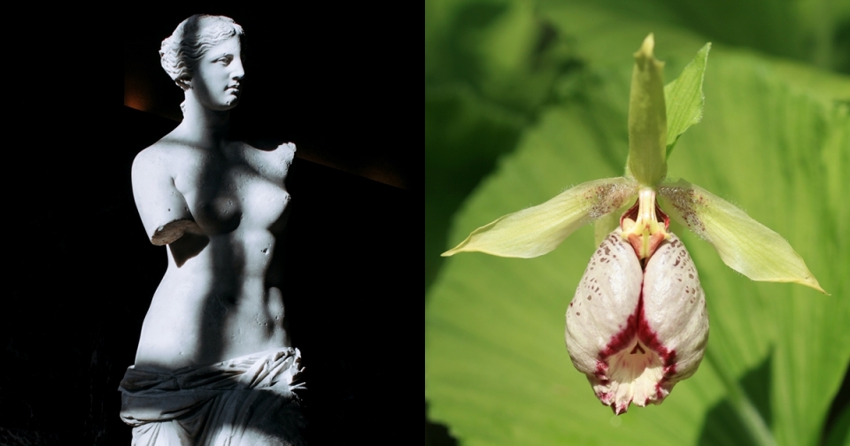 광릉요강꽃은 난초과 복주머니란속 식물인데, 이 복주머니란속 특징은 주머니 모양을 한 크고 아름다운 꽃이 달린다는 것이다. 복주머니란속 전체를 지칭하는 학명 '키프리페디움'(Cypripedium)은 그리스어로 키프리스(Cypris)와 페딜론(Pedilon)을 합친 단어다. 여기서 잠깐! 이들 이름은 지구 저편 흥미로운 일화로부터 유래했다.