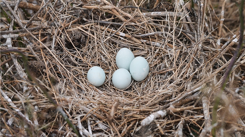 백령도로 되돌아온 노랑부리백로는 곧바로 둥지를 짓고 번식을 시작했다. 지난달 25일에는 알 4개를 낳아 품고 있는 광경이 포착됐다.