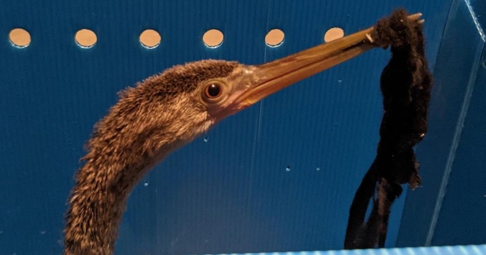 재활용업체 포오션(4ocean)이 마스크가 엉켜 부리를 움직이지 못하던 뱀목가마우지 구조 소식을 공식 트위터에 11일(이하 현지시간) 게재했다.